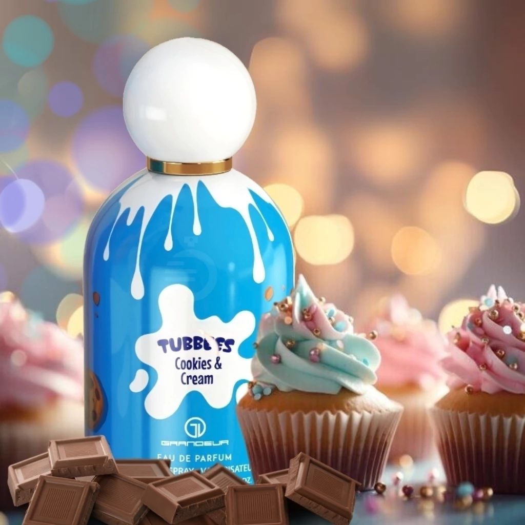 Tubbees Cookies & Cream de Grandeur es una fragancia de la familia olfativa gourmand para Hombres y Mujeres. Notas de salida: mantequilla, azúcar; Notas de corazón: leche, chocolate con leche; Notas de fondo: vainilla y almizcle blanco. Tubbees Cookies & Cream es como un sueño encantado en una tarde de fiesta. Imagina una galleta recién horneada, suave y dorada, mezclada con un abrazo de mantequilla y azúcar. El aroma a leche y chocolate con leche se entrelaza con un toque de vainilla y almizcle blanco, creando una combinación deliciosa y acogedora. Es como estar envuelto en una manta de dulzura y felicidad, donde cada respiración te lleva a un rincón mágico lleno de golosinas y alegría. ¡Es una fragancia que te hace sonreír de puro gusto!!